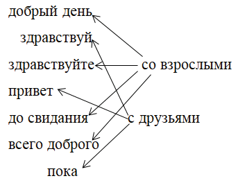 Как можно поздороваться, а потом попрощаться с друзьями? А со взрослыми? Укажи стрелками на вежливые слова.