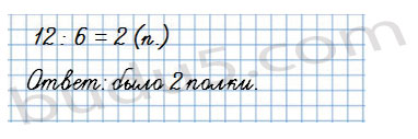 3. У Юры 12 кассет с мультфильмами. Он расставил их на полки, по 6 кассет на каждую. Сколько полок заняли эти кассеты?