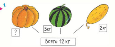 2) 12 - 5 = 7 (кг) - масса тыквы.