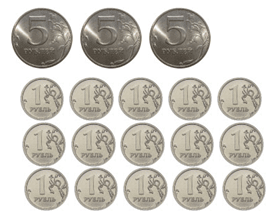 5. Какими одинаковыми монетами можно набрать 15 р.? 8 р.? 10 р.? Решение запиши умножением.