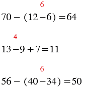 | 70 - (12 - 6) | 13 - 9 + 7 | 56 - (40 - 34) |