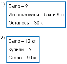 1) 5 + 6 = 11 (кг) - использовала бабушка.