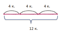 4. Толя разложил 12 мелков в 2 коробки поровну. Сколько мелков в каждой коробке?