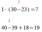 | 0 • 15 | 1 • (30 - 23) | 40 - 39 + 18 |