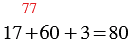 7 + 60 + 3 = (17 + 3) + 60 = 20 + 60 = 80