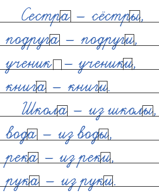 2. Школа — из школы, вода — из воды, река — из реки, рука — из руки.