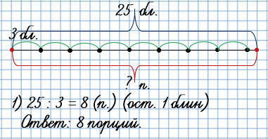 3) 25 : 3 = 8 (п.) (ост. 1)