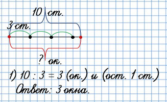 1) 10 : 3 = 3 (ок.) и (ост. 1 ст.)