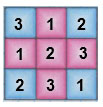 Заполни магический квадрат, используя только числа 1, 2, 3:
