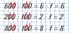 | 8 • 10 = 80 | 700 : 100 = 7 |