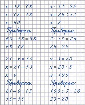 | 60 - 15 = 45 60 : 15 вычисляем путём подбора частного. 15 • 2 = 30, 30 < 60, значит число 2 не подходит; 15 • 3 = 45, 45 < 60, значит число 3 не подходит; 15 • 4 = 60, 60 = 60, значит число 4 - искомое частное. |