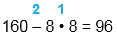 1) 8 • 8 = 64 2) 160 - 64 = 96 |