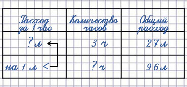 19. За 3 ч езды на легковой машине израсходовали 27 л бензина. На сколько часов езды хватит 96 л бензина, если расход его уменьшится на 1 л в час.