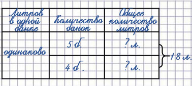 1. Из собранного урожая в семье заготовили на зиму 18 л сока: 5 одинаковых по вместимости банок яблочного сока и 4 такие же банки вишнёвого сока. Сколько литров яблочного сока и сколько литров вишнёвого сока заготовила мама?