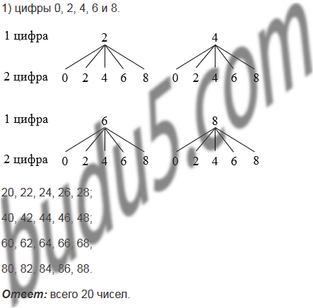 Сколько существует двузначных чисел, для записи которых используются только: 1) цифры 0, 2, 4, 6 и 8; 2) цифры 1, 3, 5, 7 и 9? (Цифры могут повторяться.)