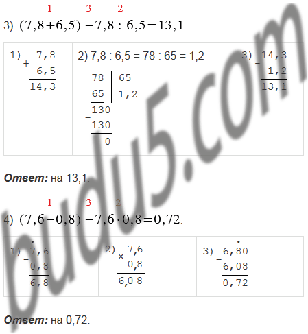 3) сумма чисел 7,8 и 6,5 больше их частного;