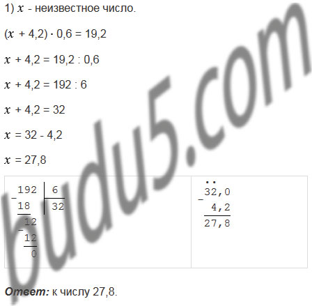 1) К какому числу надо прибавить 4,2, чтобы произведение полученной суммы и числа 0,6 было равным 19,2?