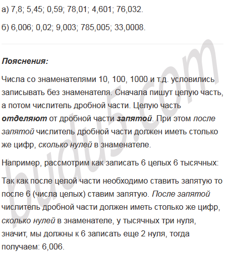 а) 7 целых 8 десятых; 5 целых 45 сотых; 0 целых 59 сотых; 78 целых 1 сотая; 4 целых 601 тысячная; 76 целых 32 тысячных;