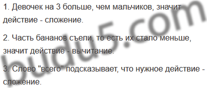 | 10 - 4 = 6 (б.) Ответ: 6 бананов. | 10 + 4 = 14 (б.) Ответ: 14 бананов. |