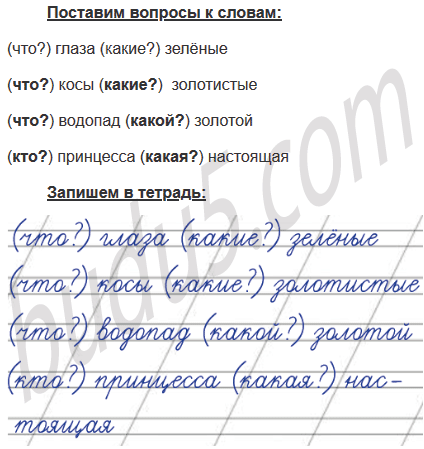 Поставь к словам вопросы. Запиши по образцу.