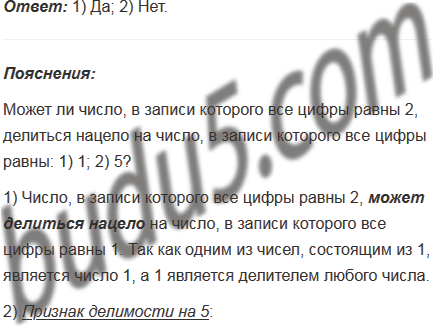 Может ли число, в записи которого все цифры равны 2, делиться нацело на число, в записи которого все цифры равны: 1) 1; 2) 5?