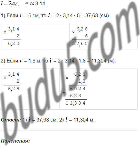 Вычислите длину окружности, радиус которой равен: 1) 6 см; 2) 1,8 м.