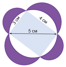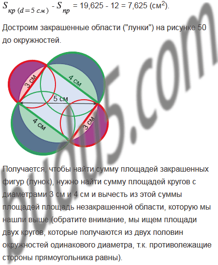 Задача Гиппократа. (Гиппократ Хиосский - древнегреческий геометр (V в. до н, э,).) Докажите, что сумма площадей закрашенных фигур ("луночек") равна площади прямоугольника (рис. 50).