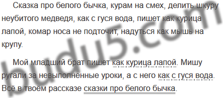 Слова для справок: медведь, курица, комар, гусь, куры, бычок, мышь.
