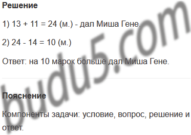 Задание № 8. В один день Миша дал Гене 13 марок. На другой день Гена дал Мише 14 марок. На третий день Миша дал Гене 11 марок. Кто кому дал больше марок и на сколько?