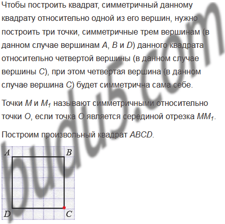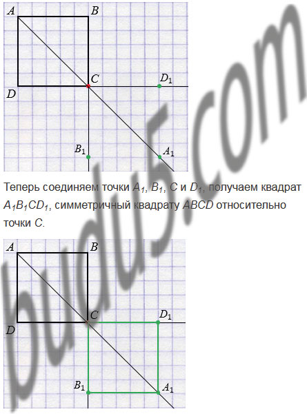 Начертите квадрат АВСD. Постройте фигуру, симметричную этому квадрату относительно точки С.