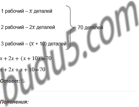Трое рабочих изготовили 70 деталей. Первый рабочий изготовил в 2 раза меньше деталей, чем второй, а третий на 10 деталей больше, чем первый.
