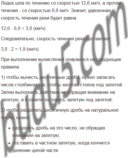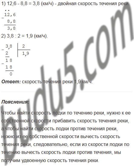 Лодка шла по течению со скоростью 12,6 км/ч, а против течения - со скоростью 8,8 км/ч. Найдите скорость течения, зная, что собственная скорость лодки не изменялась.