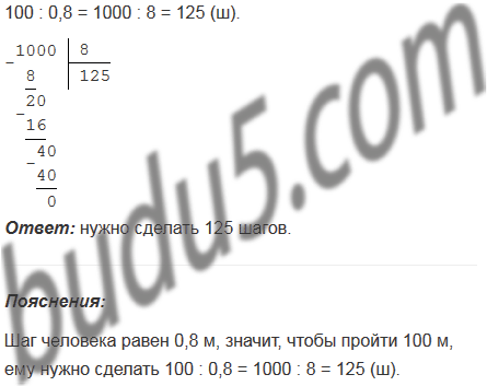 Шаг человека равен 0,8 м. Сколько шагов надо ему сделать, чтобы пройти расстояние 100 м?
