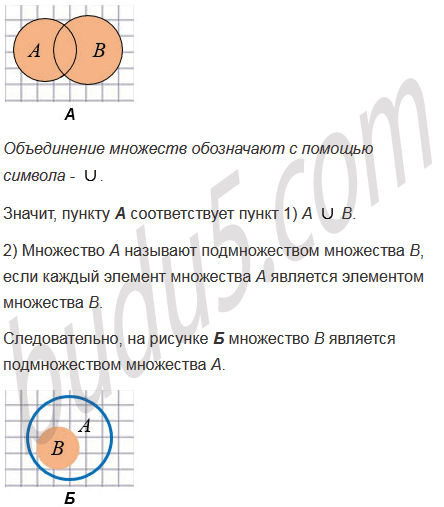 Установите соответствие между каждым рисунком и символьным обозначением подмножества, пересечения и объединения множеств.
