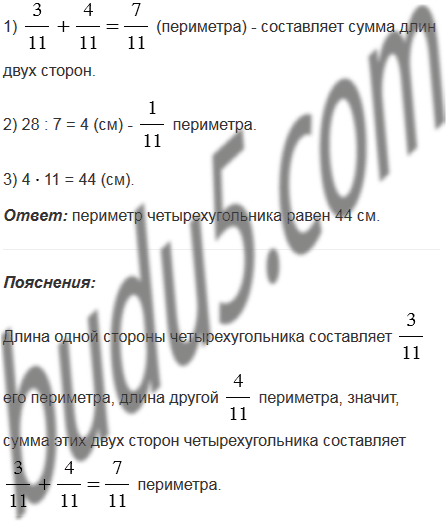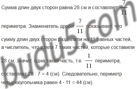 периметра, а сумма длин этих сторон равна 28 см. Найдите периметр четырехугольника.