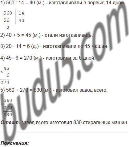 За первые 14 рабочих дней завод изготовил 560 стиральных машин, а затем стал изготавливать в день на 5 машин больше. Сколько машин выпустил завод за 20 рабочих дней?