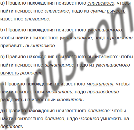 Вспомните правила нахождения неизвестного слагаемого, уменьшаемого, вычитаемого, множителя, делимого и делителя.