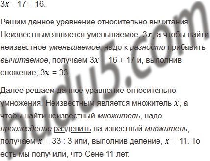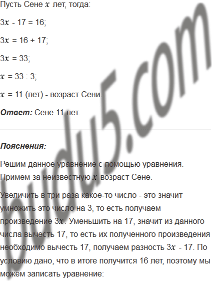Саша спросил Сеню: "Сколько тебе лет?" Сеня ответил: "Если число моих лет увеличить в 3 раза, а потом уменьшить на 17, то получится 16 лет". Сколько лет Сене?