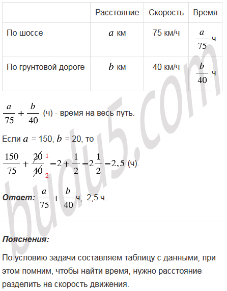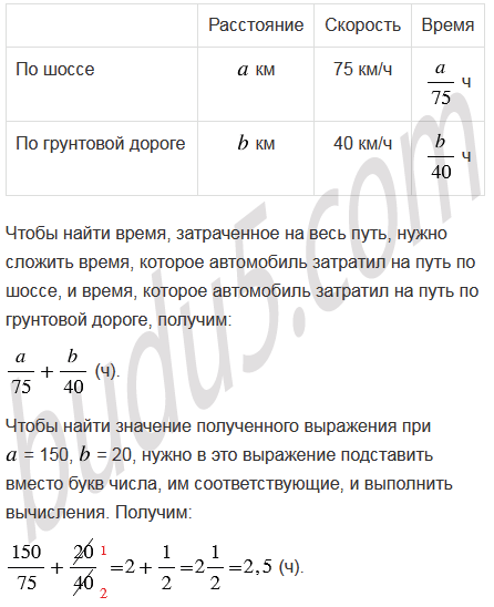 км со скоростью 40 км/ч. За какое время автомобиль проехал весь путь? Составьте выражение и найдите его значение при