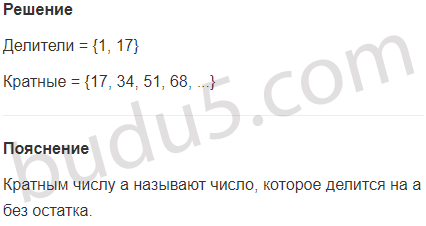 Задание № 10. Запиши множество делителей и множество кратных числа 17.