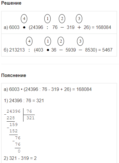 | а) 6003 • (24396 : 76 - 319 + 26); |