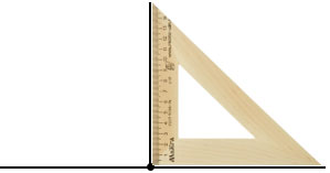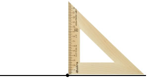 Начерти прямую. Поставь на ней точку. Возьми угольник с прямым углом и расположи его, как показано на рисунке. Возьми карандаш и дострой прямой угол.