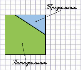 2. Начерти квадрат со стороной 4 см. Проведи в нем один отрезок так, чтобы получился пятиугольник и треугольник.