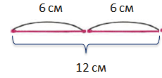 1) Отрезок длиной 12 см разделили на 2 равные части. Чему равна длина каждой части?