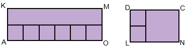 В прямоугольнике АКМО по длине уложилось 6 квадратов площадью 1 см2, а по ширине 2 квадрата площадью 1 см2. Значит, площадь прямоугольника АКМО: