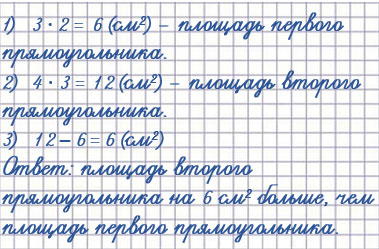 12 см2 > 6 см2, значит, площадь второго прямоугольника больше, чем площадь первого прямоугольника, на 12 - 6 = 6 (см2).