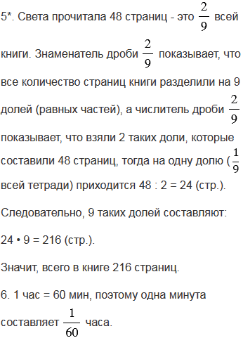 5*. Света прочитала сорок восемь страниц, что составило две девятых всей книги. Сколько страниц в книге?