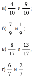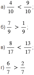 При сравнении дробей опираемся на правило, согласно которому из двух дробей с одинаковыми знаменателями больше та, у которой числитель больше, и меньше та, у которой числитель меньше.