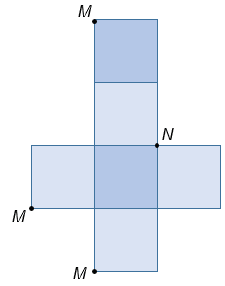 Для того, чтобы найти самый короткий путь по поверхности куба от точки М к точке N, начертим развертку куба.
