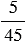 На самостоятельную работу ушло 5 мин. Какая часть урока ушла на самостоятельную работу, если урок длился 45 мин?
